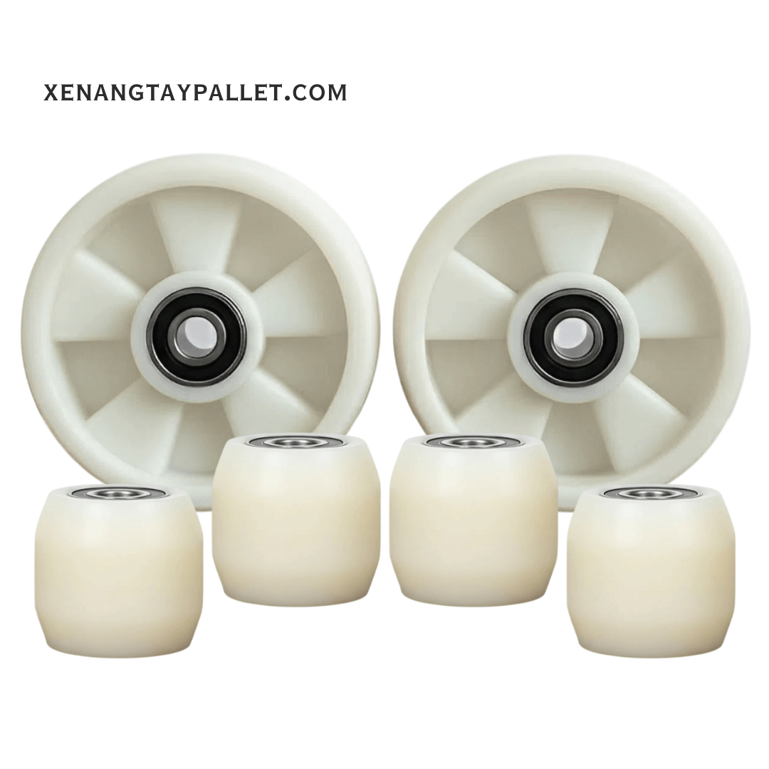 Bánh xe Nylon là loại bánh xe công nghiệp được sản xuất từ vật liệu nhựa kỹ thuật Polyamide (viết tắt là PA, thường được gọi là Nylon). Nylon là một loại polyme tổng hợp có độ bền cơ học và khả năng chống mài mòn cực cao. Trong ngành xe nâng và xe đẩy hàng, bánh xe Nylon được sử dụng rộng rãi, đặc biệt với xe nâng tay và các thiết bị chịu tải nặng. Chúng thường có màu trắng ngà hoặc trắng tinh, bề mặt cứng và trơn.