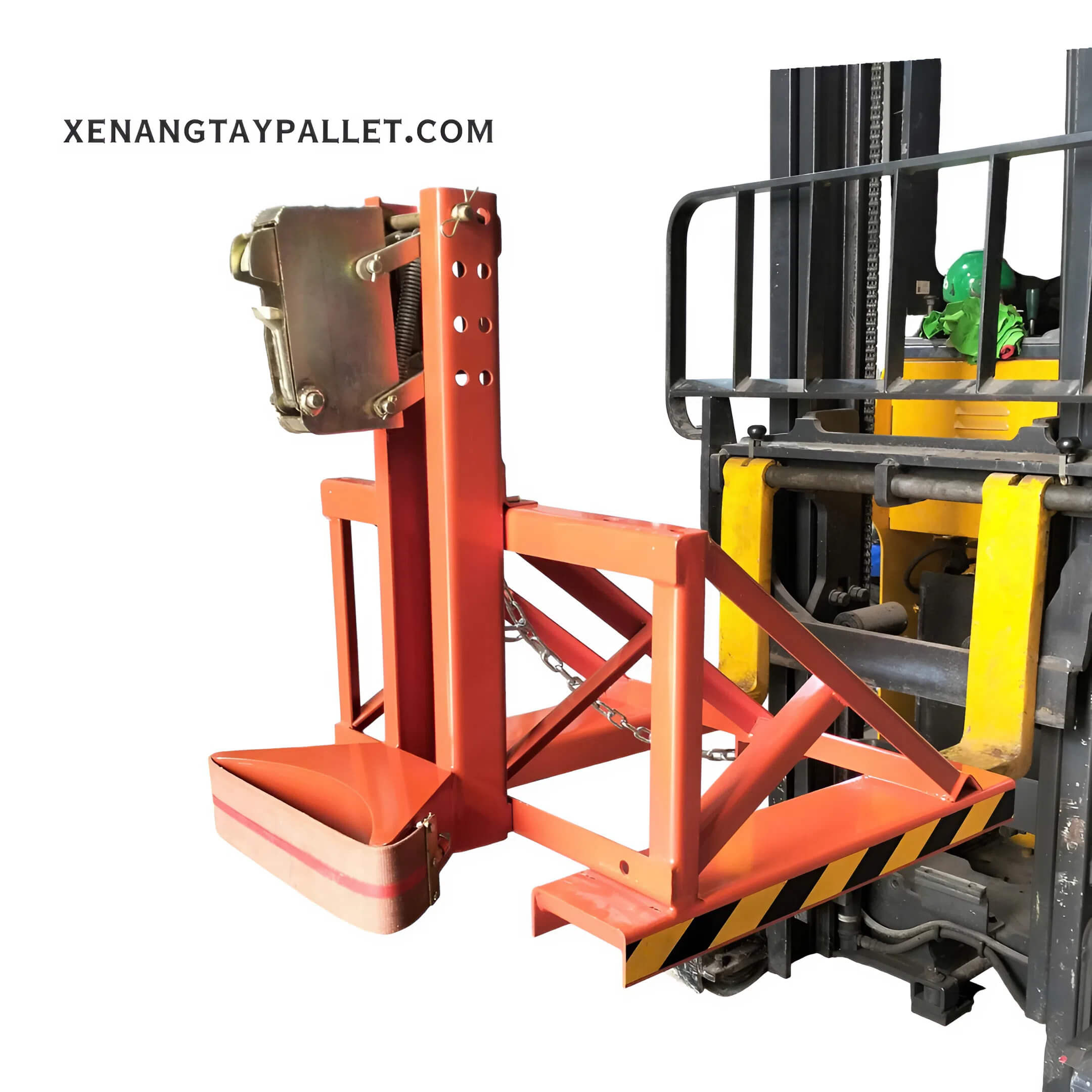 Càng gắp thùng phuy 360kg là thiết bị được Hưng Việt sản xuất để gắp thùng phuy nhựa, sắt lên cao và di chuyển dễ dàng. Bộ kẹp này được luồn vào càng xe nâng và cố định bằng dây xích chắc chắn. Bên cạnh đó, thiết bị này còn được thiết kế với 3 thanh chắn giúp chịu tải cực tốt, đảm bảo an toàn cho cả sản phẩm và người lao động.