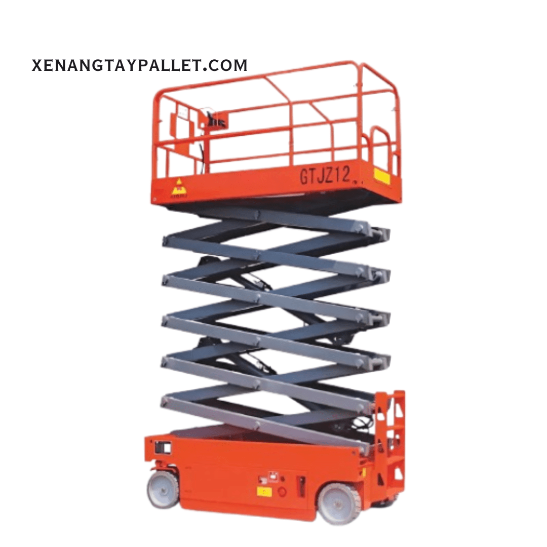 Cơ cấu nâng cắt kéo tự hành: cho phép người vận hành điều khiển di chuyển, nâng hạ ngay trên sàn làm việc, rất tiện lợi khi thi công trên cao.